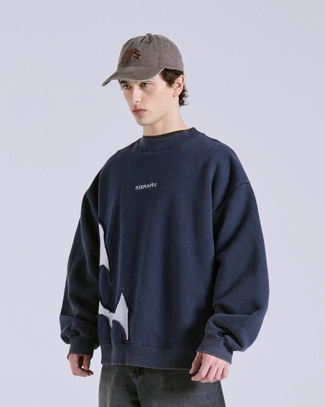 Buzo de friza de algodón con recortes cosidos artesanalmente