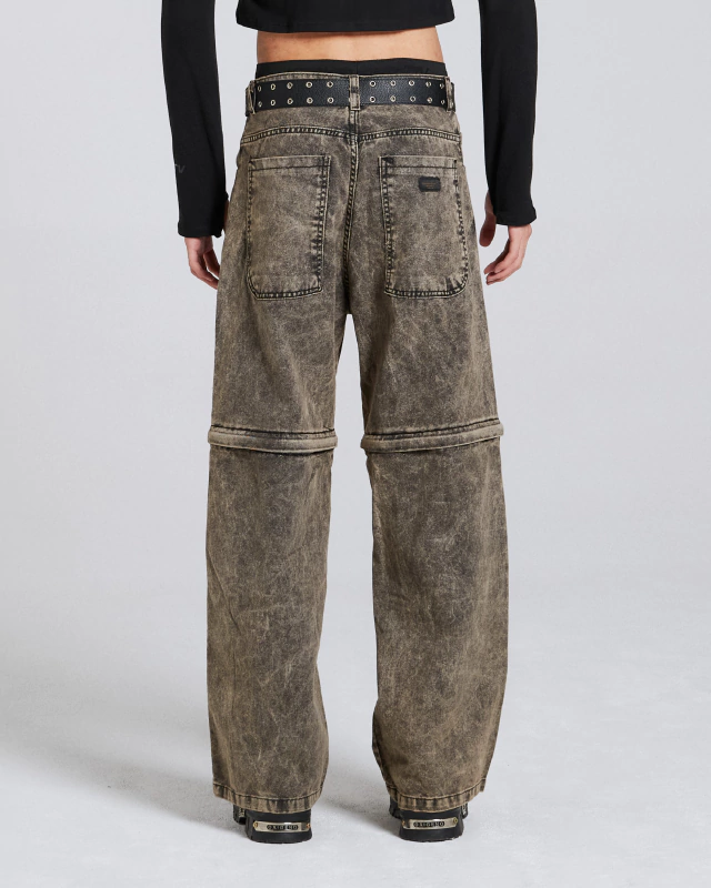 Pantalón de Jean recto con cierres desmontables que se hace bermuda.